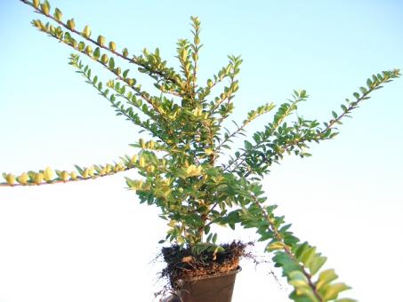 Böschungsmyrthe Maigrün auch Schirm-Heckenkirsche, Heckenkirsche, Heckenmyrthe genannt ist eine immergrüne, Laubpflanze (Wuchsform Kleinstrauch) - ein klassischer Bodendecker, der auch als niedrige Hecke verwendet werden kann. Böschungsmyrthe Maigrün wird 80 bis 100 cm groß und 80 bis 100 cm breit. Der botanische Name ist Lonicera nitida Maigrün. | ||||||||||