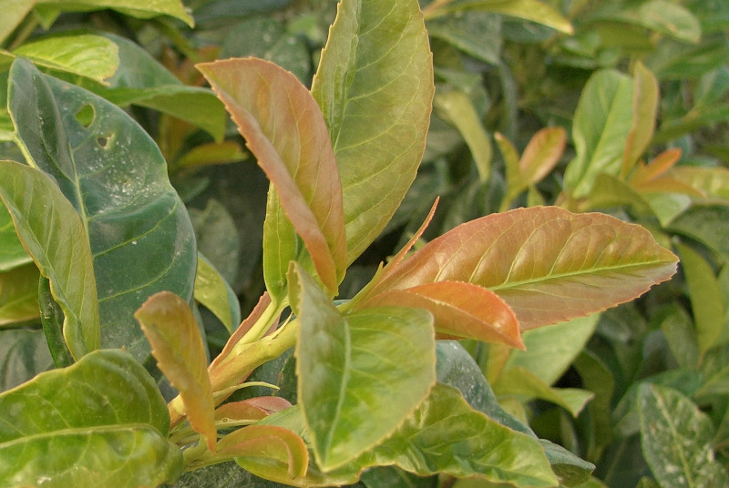Besonderheit immergrünes dichtes Laub mit bronzefarbenem Austrieb |