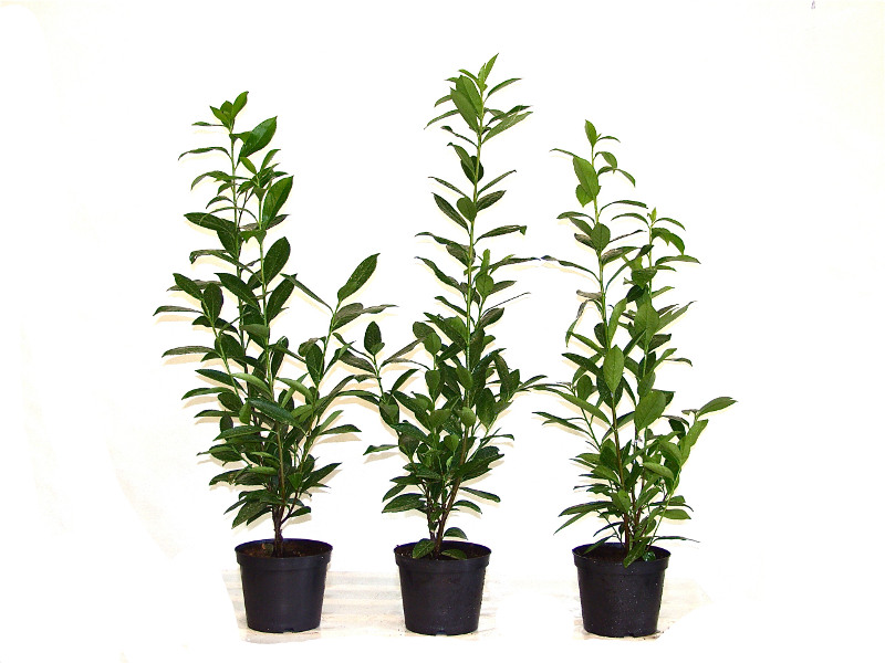 Wir schneiden unsere Kirschlobeerpflanzen bei der Anzucht zurück. Durch den Rückschnitt entwickelt sich eine buschige Qualität - dass bedeutet dichtere Hecken bei geringerem Pflanzenbedarf. Wuchsform straff aufrecht und kräftig wachsender Strauch